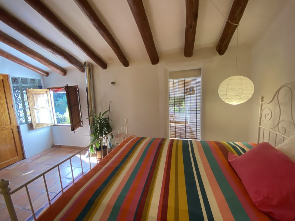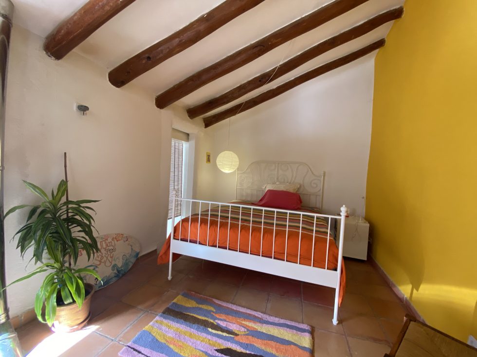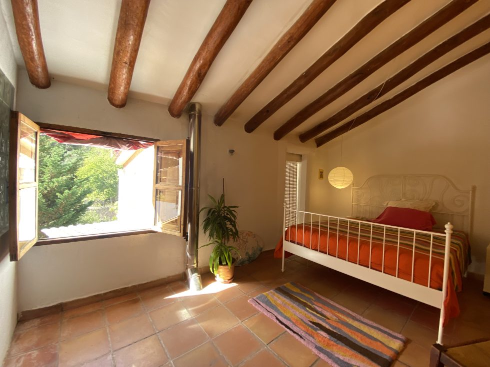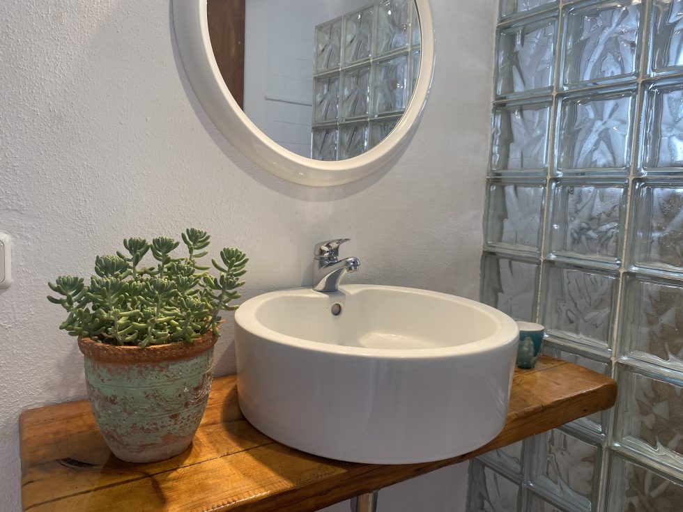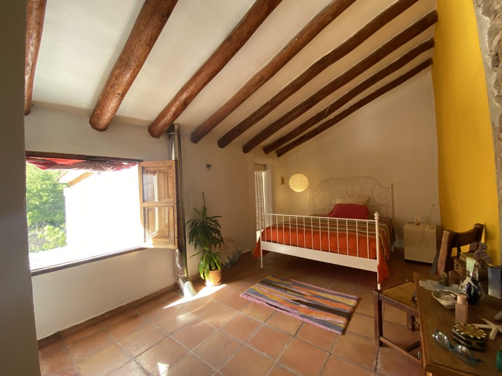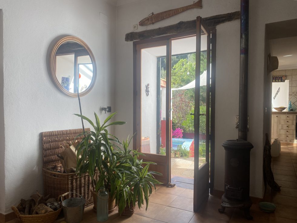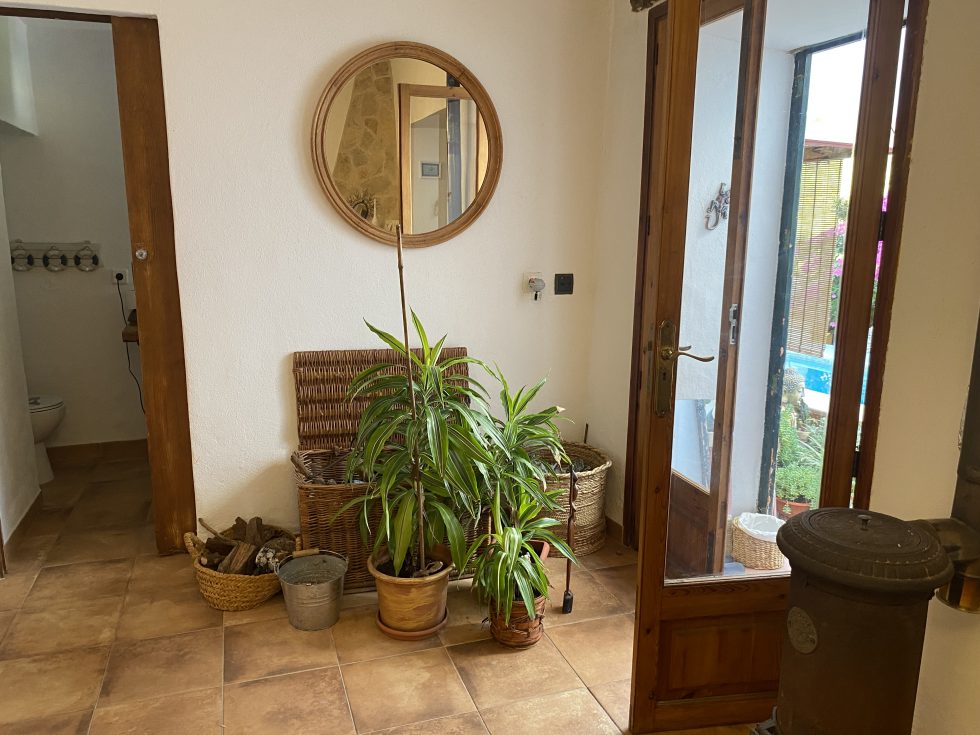 También hay un baño con ducha en la parte de abajo y una salida a un jardín de 200 metros con porche, piscina, césped y una gran pila de piedra antigua en la que se puede hacer un pequeño estanque.