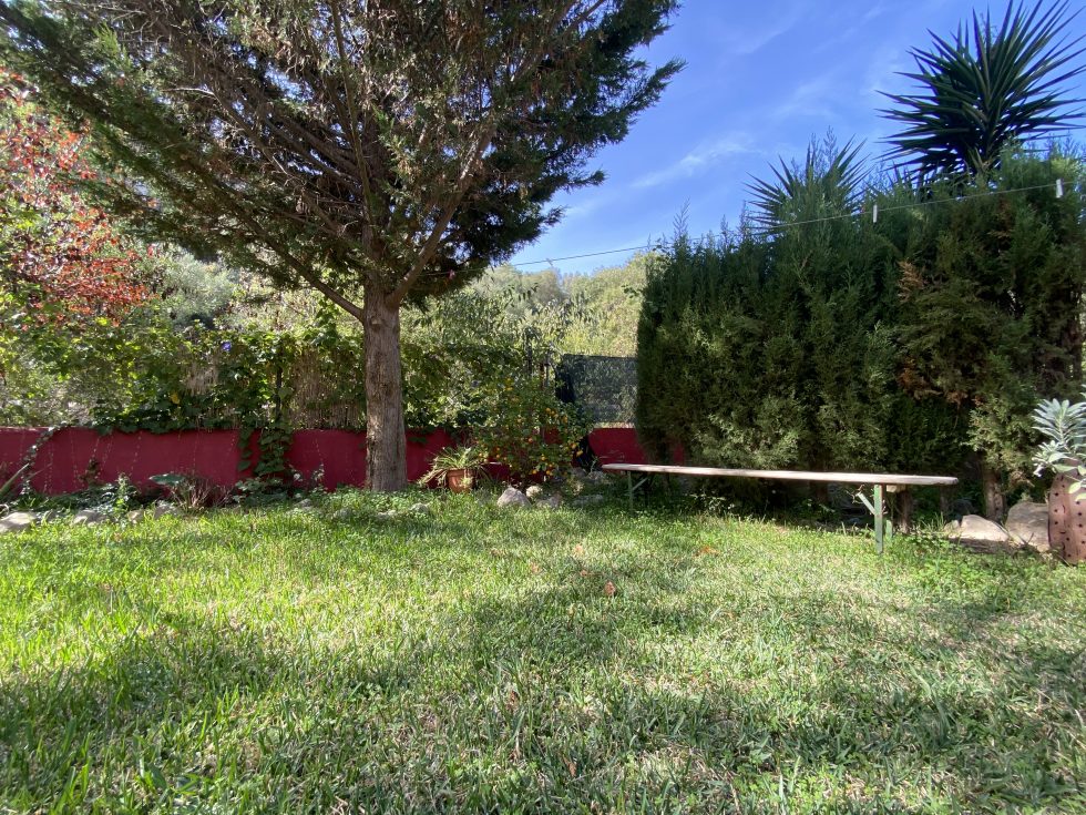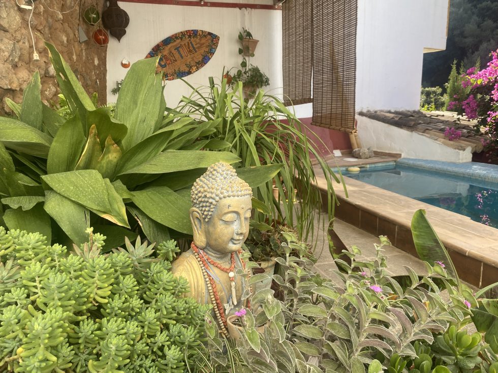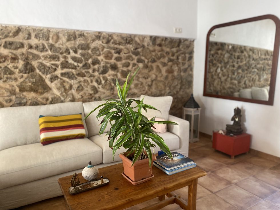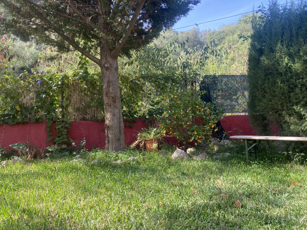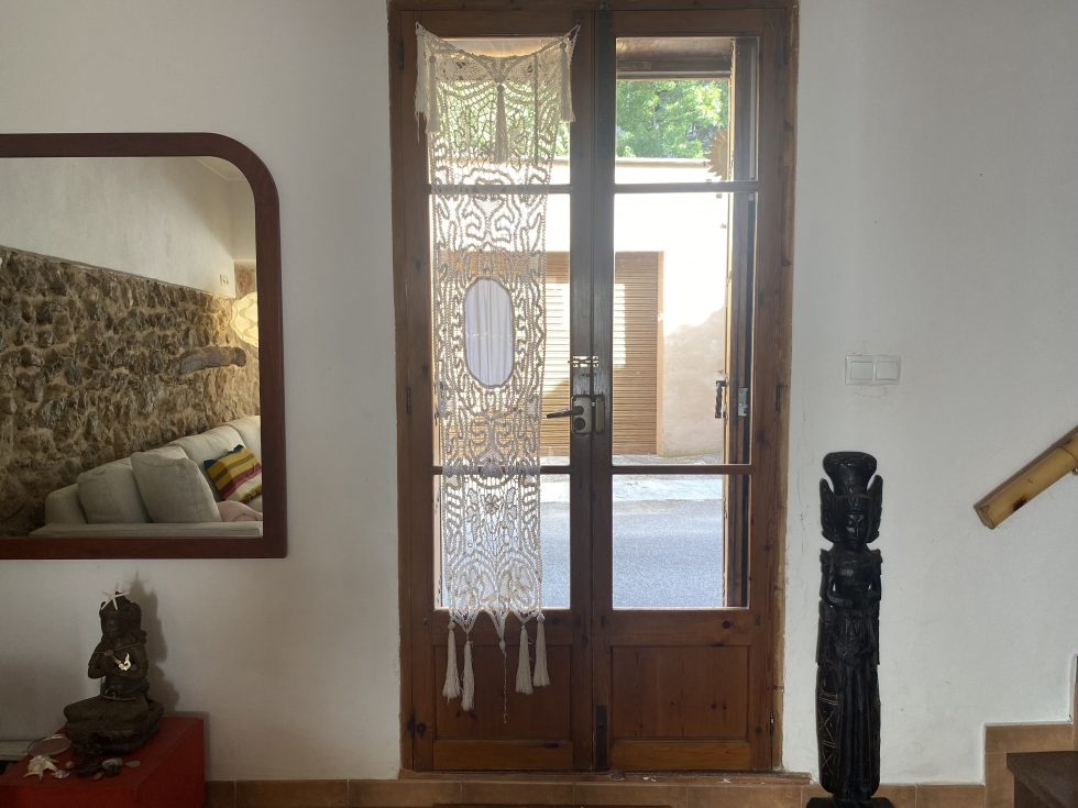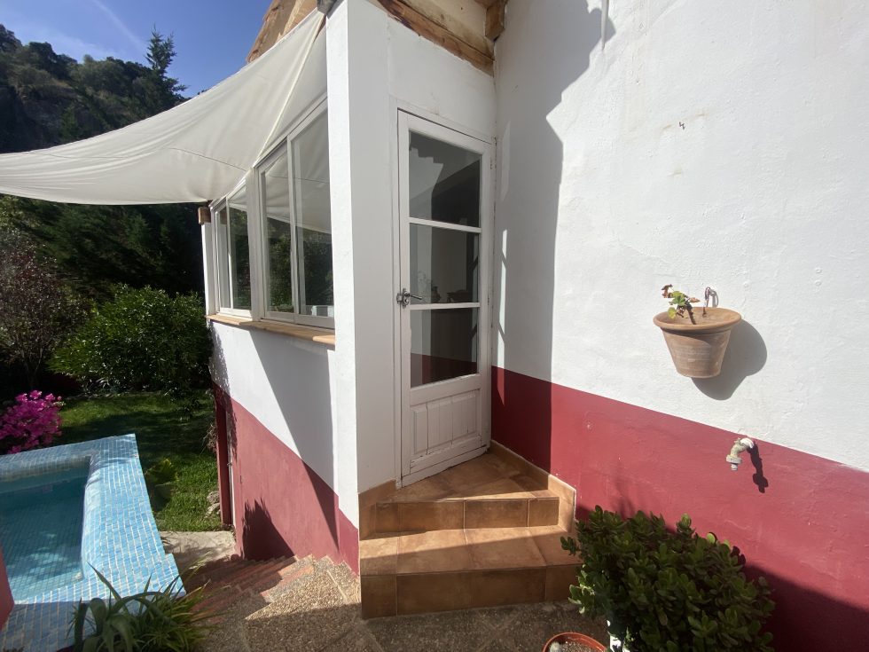 También hay un baño con ducha en la parte de abajo y una salida a un jardín de 200 metros con porche, piscina, césped y una gran pila de piedra antigua en la que se puede hacer un pequeño estanque.