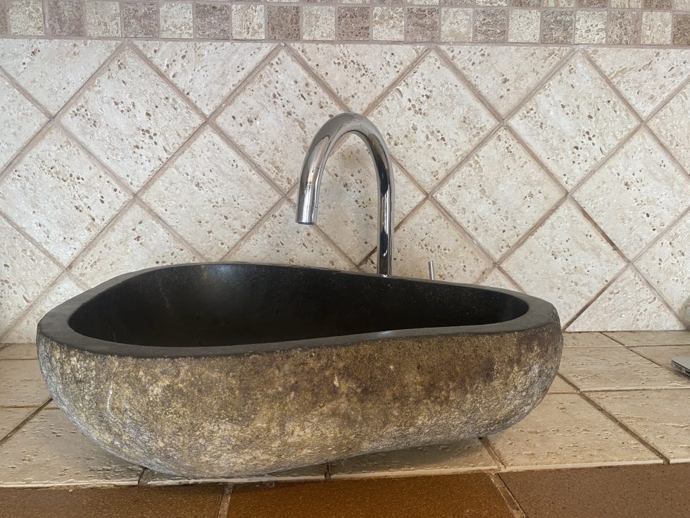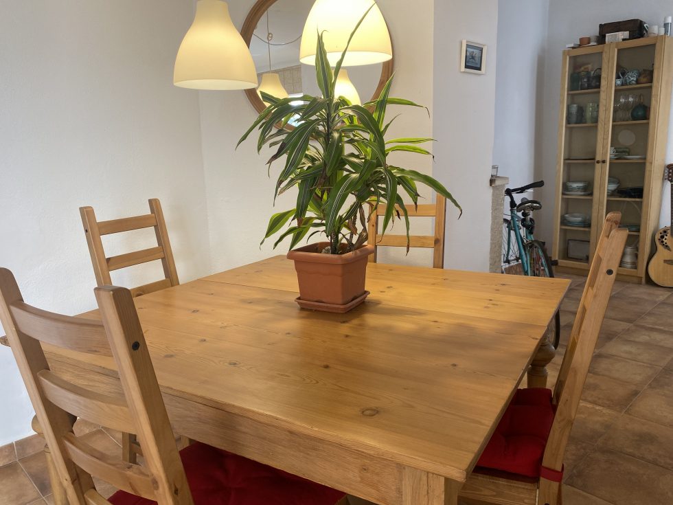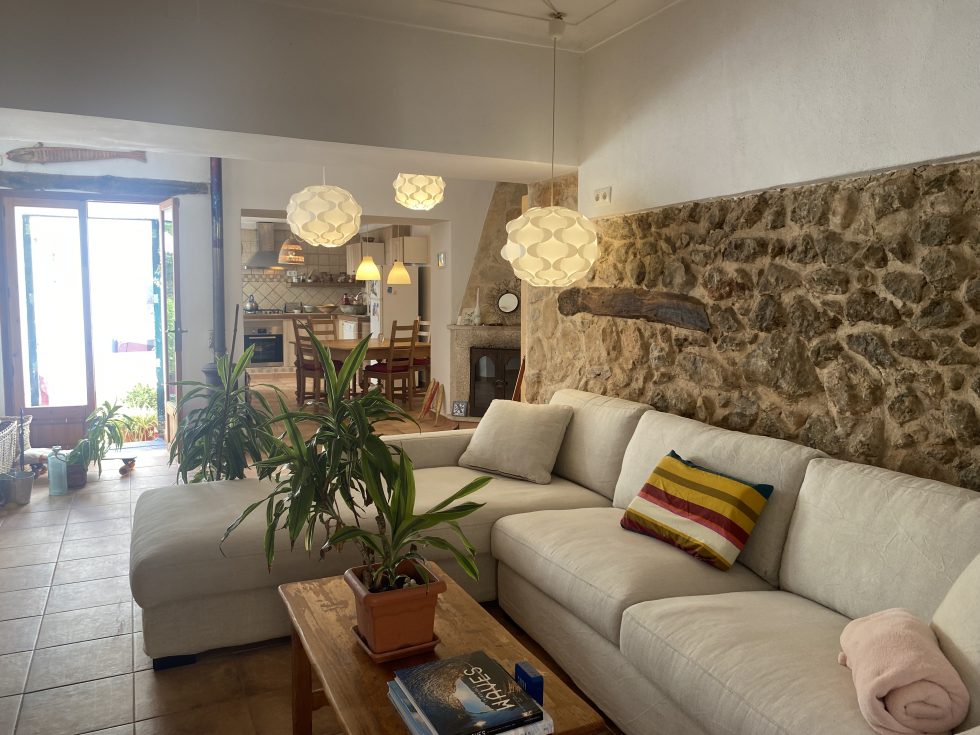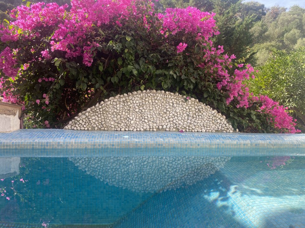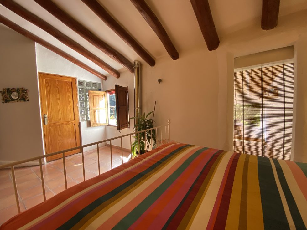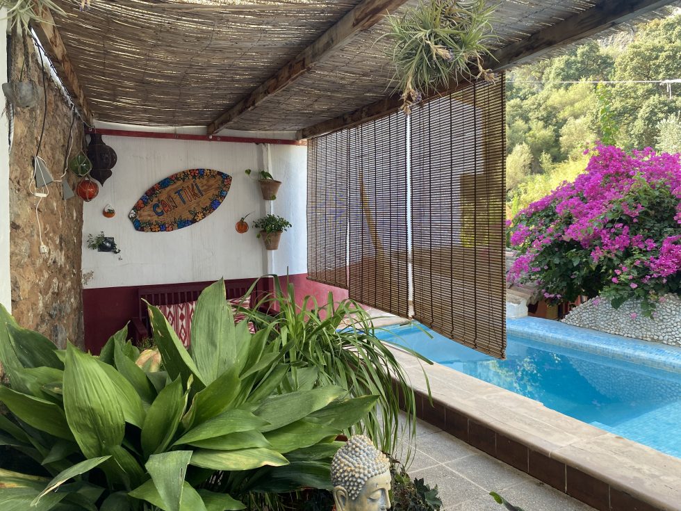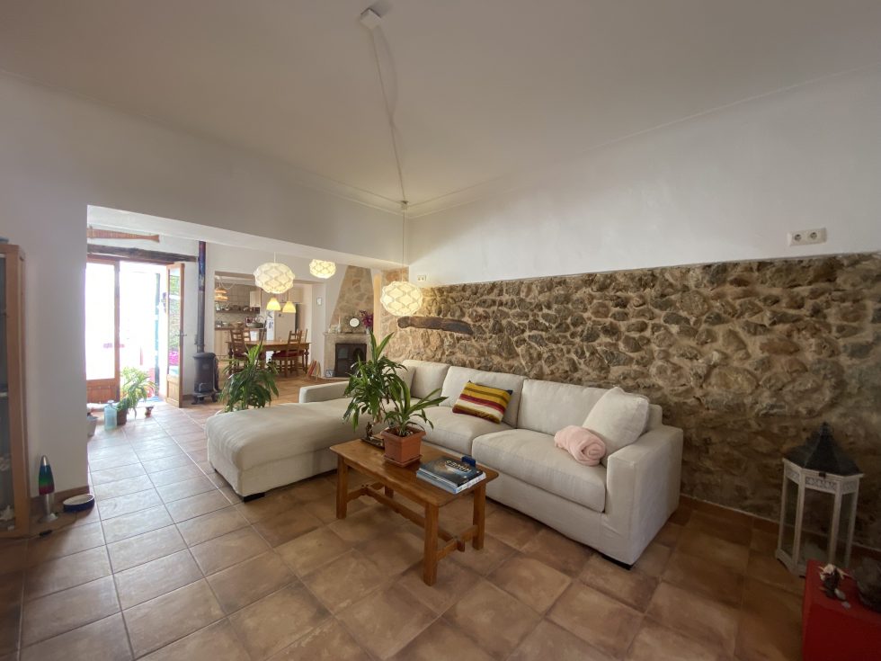 También hay un baño con ducha en la parte de abajo y una salida a un jardín de 200 metros con porche, piscina, césped y una gran pila de piedra antigua en la que se puede hacer un pequeño estanque.