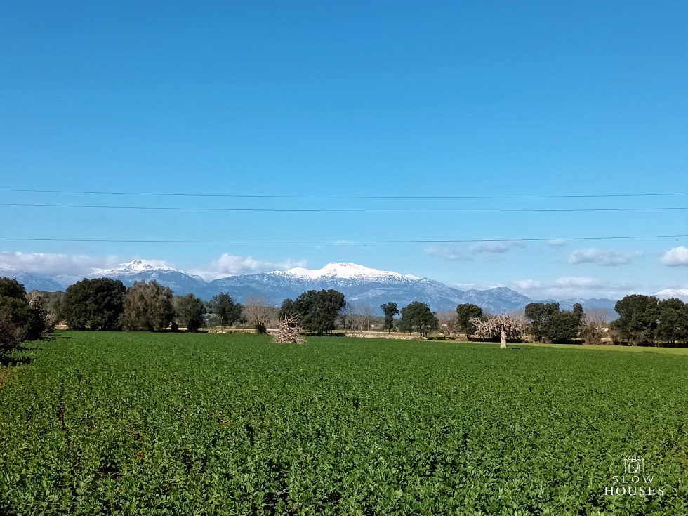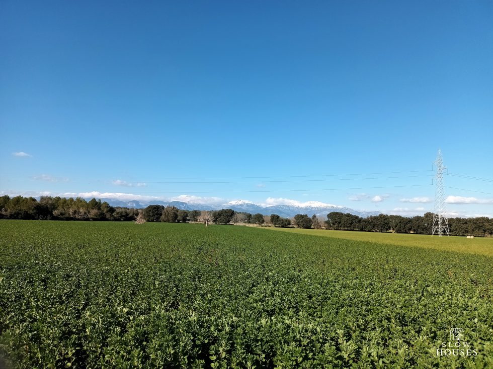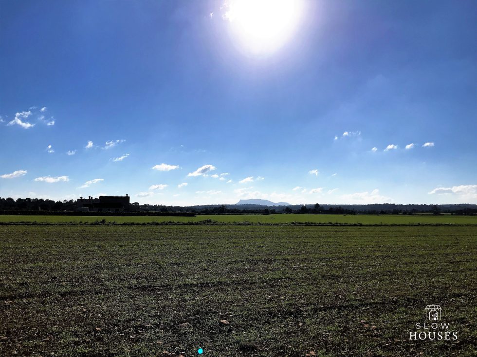 El entorno de la parcela es tranquilo, muy despejado y con vistas al fondo de la Sierra de Tramuntana.