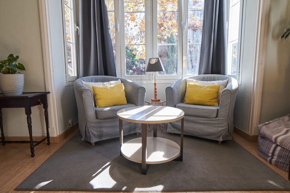El dormitorio principal es amplio, tiene acceso a una pequeña terraza y cuenta con un gran armario empotrado. El salón es una delicia de espacio con chimenea y ventanales con mucha luz natural.